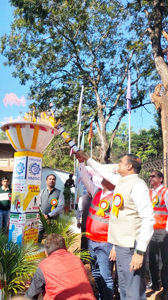 बचेली। एनएमडीसी बचेली परियोजना में वार्षिक खान सुरक्षा समारोह बड़े उत्साह और अनुशासन के साथ आयोजित किया गया। समारोह का शुभारंभ 8 दिसंबर, मंगलवार को परियोजना प्रमुख श्रीधर कोडारी ने ध्वजारोहण एवं सुरक्षा मशाल प्रज्वलित कर किया।