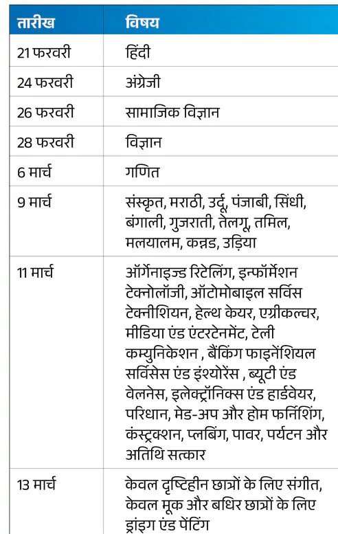 10 वीं परीक्षा का टाइम टेबल-