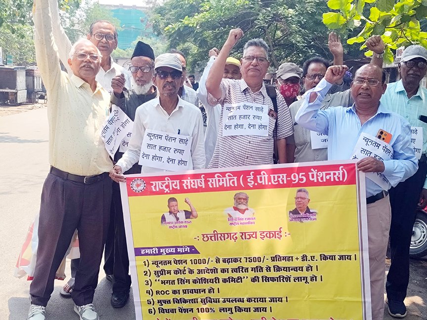 ईपीएस-95 पेंशन वृद्धि हेतु देशव्यापी अभियान के अंतर्गत रायपुर में धरना एवं ज्ञापन सौंपा गया