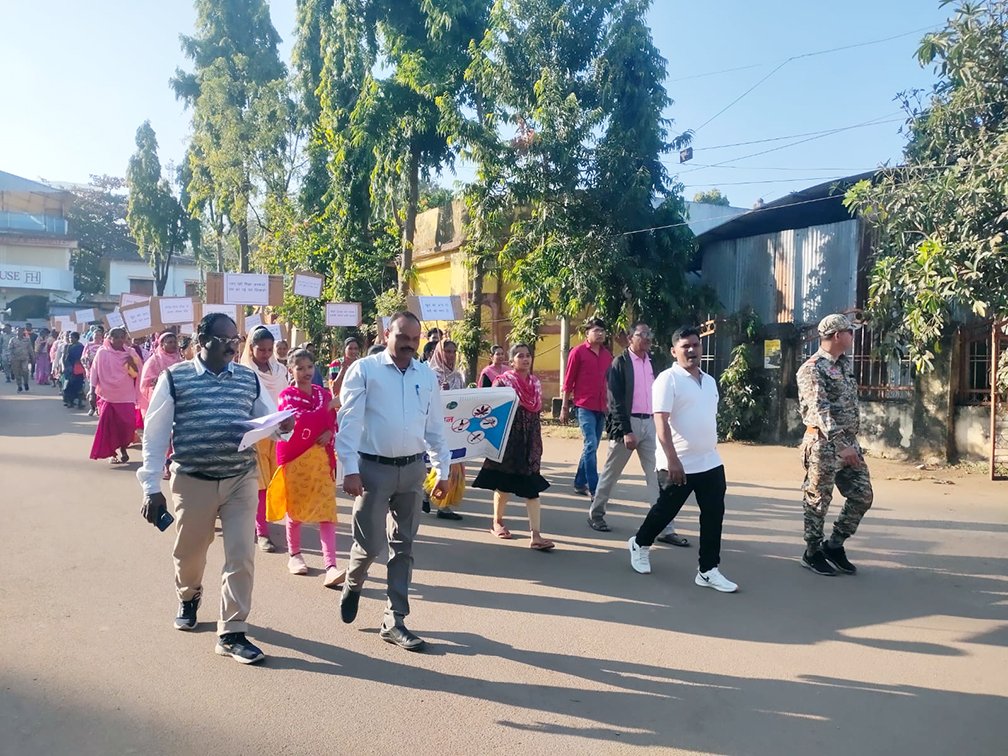 बचेली। दक्षिण बस्तर जिला दंतेवाड़ा कलेक्टर समाज कल्याण शाखा जिला के आदेशानुसार राज्य रजत जंयती के अवसर पर 18 दिंसबर, गुरूवार को गुरू घासीदास जयंती के उपलक्ष्य में विशेष जन जागरूकता कार्यक्रम के अंतर्गत नशा निषेध दिवस का आयेाजन किया गया। बचेली के मुख्य नगर पालिका अधिकारी पीटीएम कृष्णाराव के नेतृत्व में नशा मुक्तिको लेकर जनजागरूकता विकसित करने के उदेश्य से जागरूकता रैली निकाली गई। पालिका कार्यालय से होते हुए मुख्य मार्ग गौरव पथ, एनएमडीसी प्रवेश द्वार, घड़ी चैक, मार्केट होते हुए वापस गौरव पथ व कार्यालय में समापन हुआ। रैली के माध्यम से नागरिको को नशे से होने वाले समाजिक, पारिवारिक और स्वास्थ्य संबंधी दुष्प्रभावों की जानकारी दी गई तथा नशा मुक्त जीवन अपनाने का संदेश भी दिया गया।