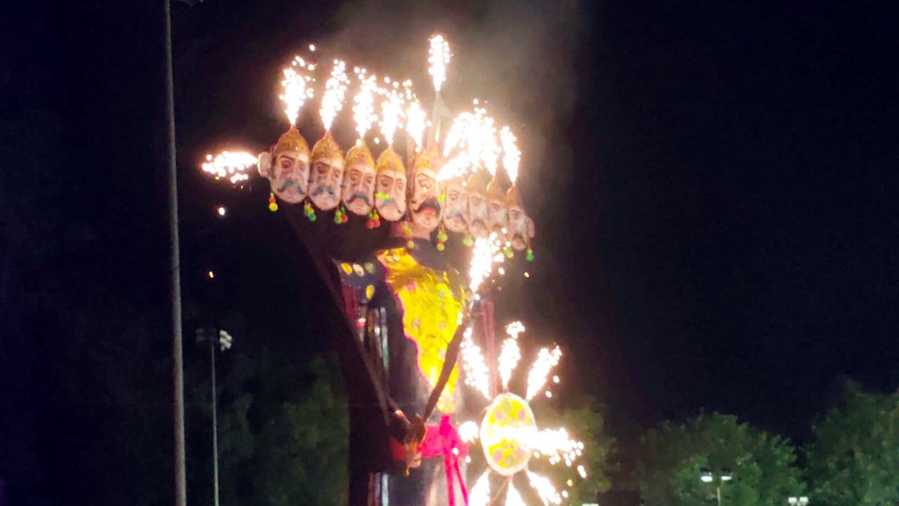55 फीट रावण का पुतला पूरा तो नही जला, लेकिन सांस्कृतिक कार्यक्रमों और हजारों की भीड़ ने बनाया यादगार माहौल