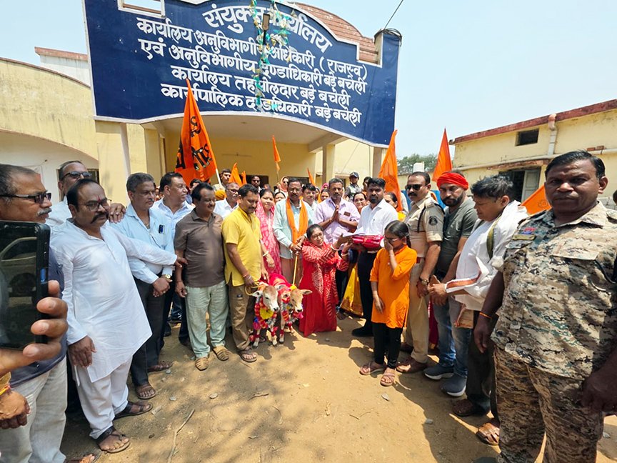 बचेली/(दंतेवाड़ा)। गो सम्मान को बढ़ावा देने और समाज में जागरूकता फैलाने के उद्देश्य से “गो सम्मान आह्वान अभियान” के तहत 27 अप्रैल 2026 (गो सम्मान दिवस) पर भव्य आयोजन किया गया। कार्यक्रम का शुभारंभ प्रातः 10:30 बजे हुआ, जिसमें समाज के विभिन्न वर्गों के लोग, व्यापारी, साधु-संत, गो सेवक-सेविकाएं एवं धर्मप्रेमी नागरिक बड़ी संख्या में शामिल हुए।