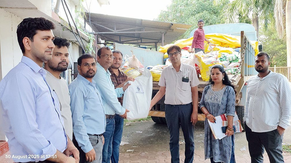 एनएमडीसी की ओर से बाढ पीडि़तों को राहत व राशन सामग्री पैकेट श्री मो.तनवीर जावेद, उप महाप्रबंधक (मानव संसाधन), श्री अभिजीत घोष, सहा.महाप्रबंधक (मा.सं.), श्री शैलेन्द्र सोनी, सहा. महाप्रबंधक (मा.सं.), श्री प्रमोद कुमार, सहा.महाप्रबंधक (सुरक्षा), श्री विवेक कुमार रक्शा, वरि.प्रबंधक (सीएसआर), श्री पारितोष तिवारी, सहा.प्रबंधक (मा.सं.), श्री विवेक राय के द्वारा वितरण हेतु जिला प्रशासन दंतेवाड़ा को सौंपा जा रहा हैं। ज्ञात हो कि एनएमडीसी अपनी सामाजिक प्रतिबद्धता को सदैव निभाते हुए हमेशा ऐसे जनहित कार्यों में पीडि़तों के लिए तत्पर रहती है।