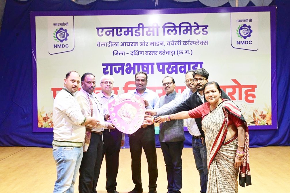बचेली। एनएमडीसी बैलाडीला आयरन ओर माइन, बचेली कॉम्‍प्‍लेक्‍स में दिनांक 20-11-2025 को बैला-5 क्‍लब में श्री टी शिव कुमार, मुख्‍य महाप्रबंधक (उत्‍पादन) के मुख्‍य आतिथ्‍य में राजभाषा पखवाड़ा पुरस्‍कार वितरण समारोह आयोजित किया गया। इस समारोह में सभी विभागाध्‍यक्ष, श्रमिक संघों के पदाधिकारी एवं पुरस्‍कार विजेताओं अधिकारियों, कर्मचारियों एवं विभिन्‍न विद्यालयों के विजेता प्रतिभागी शिक्षकों की उपस्थिति रही। ज्ञातव्‍य है कि दिनांक 14-09-2025 से 29-09-2025 तक परियोजना प्रमुख श्री श्रीधर कोडाली, मुख्‍य महाप्रबंधक के मार्गदर्शन, श्री महेश एस नायर, महाप्रबंधक (मानव संसाधन) सह सर्वकार्यभारी अधिकारी राजभाषा के समन्‍वय में राजभाषा प्रकोष्‍ठ द्वारा राजभाषा पखवाड़ा मनाया गया। इस अवधि में बीआईओएम, बचेली कॉम्‍प्‍लेक्‍स के अधिकारियों, कर्मचारियों, गृहणियों एवं शिक्षकों हेतु हिन्‍दी निबंध, हिन्‍दी टंकण, रिक्‍त स्‍थान भरें, चित्र देखें एवं लिखें, लघुकथा लेखन एवं लिखित सामान्‍य ज्ञान प्रतियोगिताएं आयोजित की गई थीं।