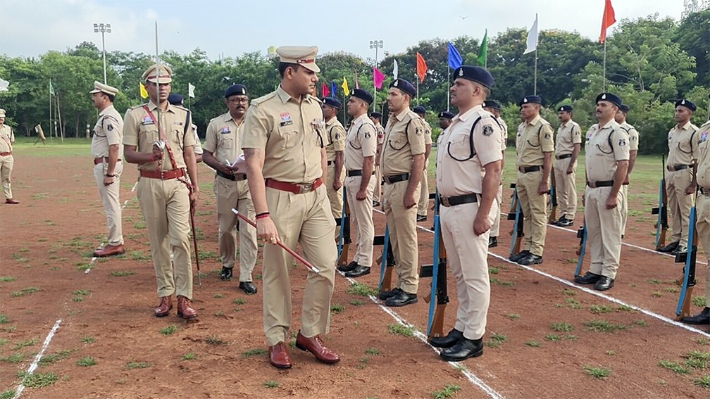 राजनांदगांव।पुलिस अधीक्षक मोहित गर्ग द्वारा वार्षिक निरीक्षण हेतु 19.09.2025 को रक्षित केन्द्र राजनांदगांव में उन्हें सलामी दी गई तत्पश्चात जनरल परेड में उन्होंने सलामी लिया। पुलिस अधीक्षक के वार्षिक निरीक्षण परेड में रक्षित केन्द्र/थाना/चौकी/यातायात शाखा एवं डॉक स्कार्ट के कुल 80 अधिकारी/कर्मचारी हुए शामिल। परेड में शामिल पुलिस जवानों का टर्नआउट एवं परेड का निरीक्षण किया साथ ही डॉग स्कॉड का भी निरीक्षण किया गया। जिन अधिकारी कर्मचारियों का टर्नआउट साफसुथरा व उच्चकोटि का पाए जाने पर संबंधित अधिकारी/कर्मचारियों को उनके द्वारा ईनाम दिया गया। पुलिस अधीक्षक द्वारा परेड कमांडरों को स्कावर्ड ड्रील कराने को कहा गया जिनके कमाण्ड पर जवानों ने बेहतरीन परेड का प्रदर्शन किया।