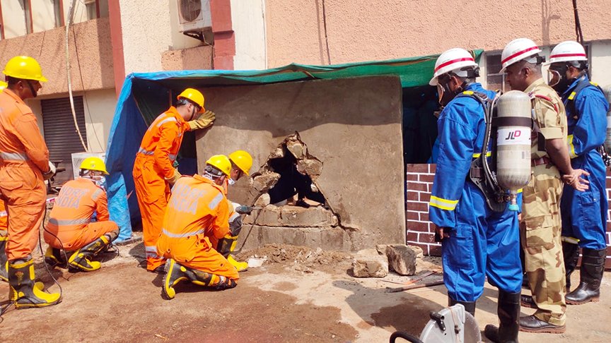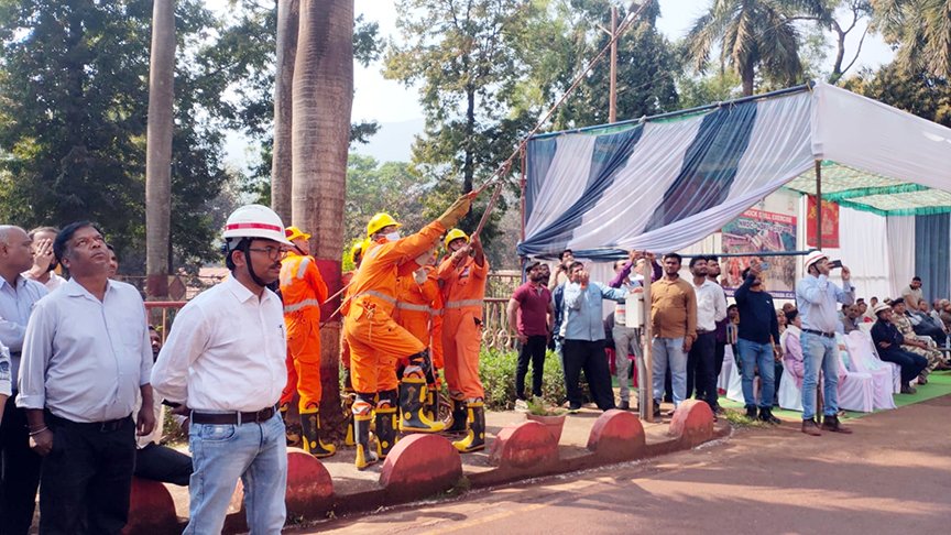 एनएमडीसी प्रशासनिक भवन में आग लगने की स्थिति में आपदा प्रबंधन की तैयारियों का किया गया अभ्यास