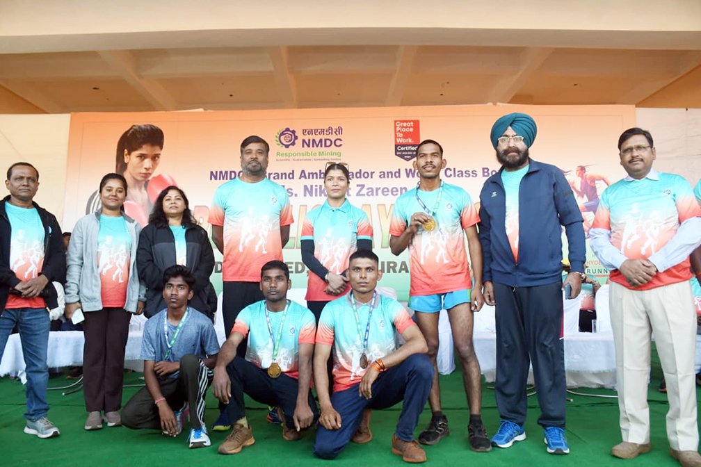 सुश्री निखत ज़रीन ने रवीन्द्र नारायण, अधिशासी निदेशक (किरंदुल परियोजना), श्री के. पी. सिंह, मुख्य महाप्रबंधक (उत्पादन) तथा श्रीमती नमिता नारायण, अध्यक्ष, प्रेरणा महिला समिति, किरंदुल के साथ मिलकर दौड़ को हरी झंडी दिखाकर रवाना किया। समय से दौड़ पूरी करने वाले प्रतिभागियों को मेडल भेंट कर हौसला अफजाई की गई।